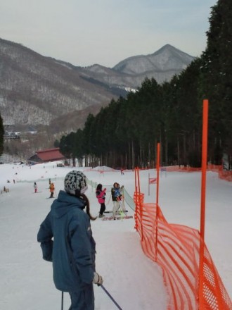 お母さん方も参加している子供達の滑りを見守りながら声援を送っています。